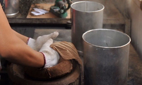 7.蒸軟:再將蒸筒放在蒸氣出口中央,帶茶葉充分變軟